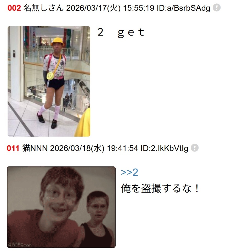 | 008 | 名無しさん | 2026/04/02(木) 23:41:38 | 女装し女子小学生なりすまし変態ゴミ猫NN | 画像 |